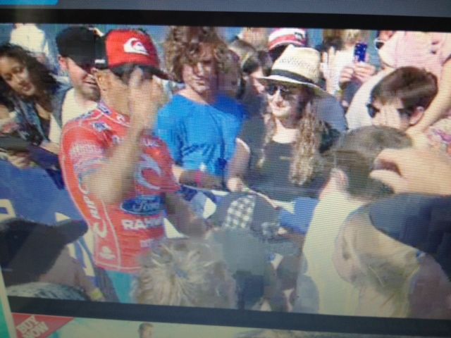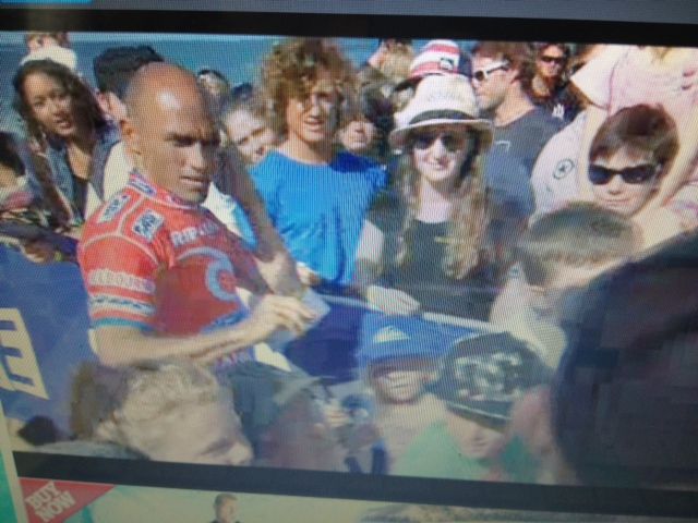 ・・・ケリーがたくさんのファンに囲まれて、サインをしてあげていました。