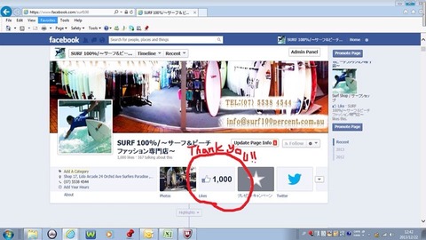 こんばんは、Ozzyです! 初めに、皆様のおかげで当店のFacebookのいいね!が1,000件に到達いたしました いつも応援ありがとうございます! これからもSURF100%をよろしくお願いいたしますm(_ _)m ち…